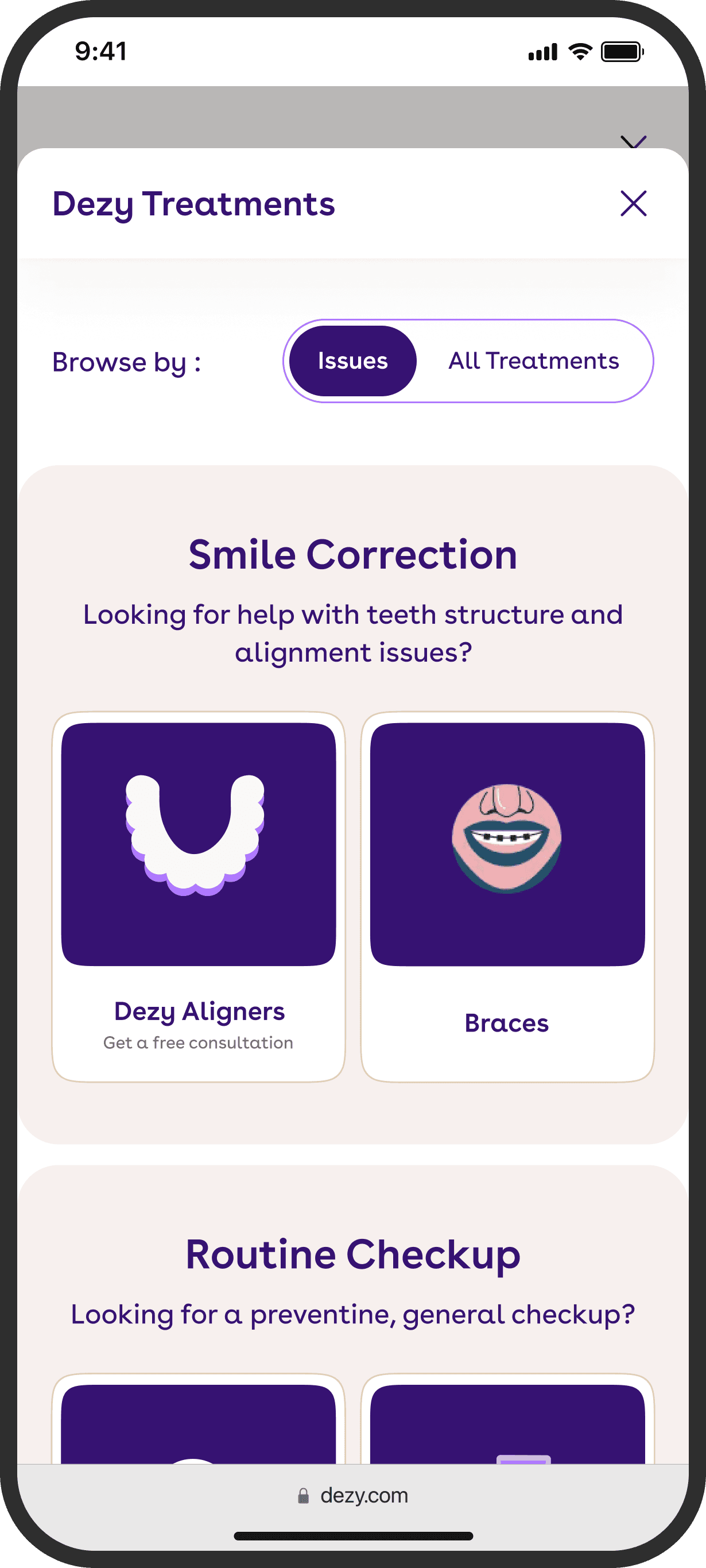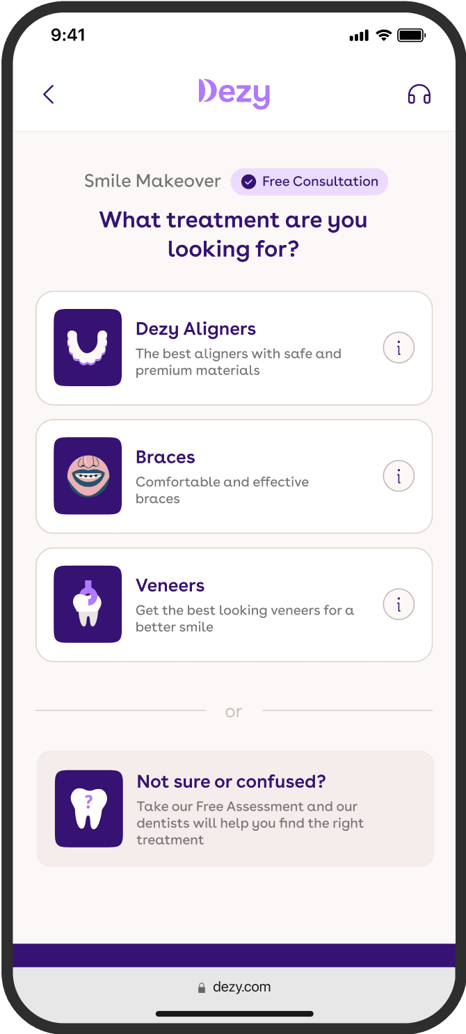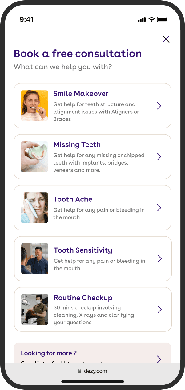 Dezy’s rebranding that happened before our project began was its first step in differentiating itself in a market where brand-building was not usually common. The second step was the website re-design. With it, Dezy wanted to overhaul its current end-to-end experience which would ultimately enable its main product - providing dental treatments in its state-of-the-art clinics.